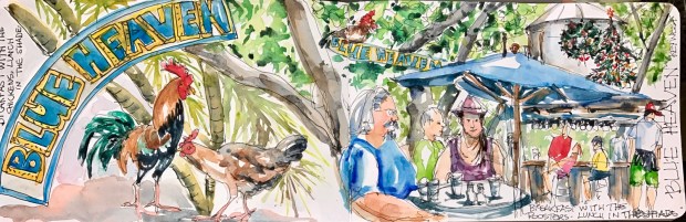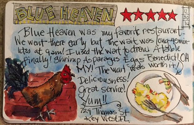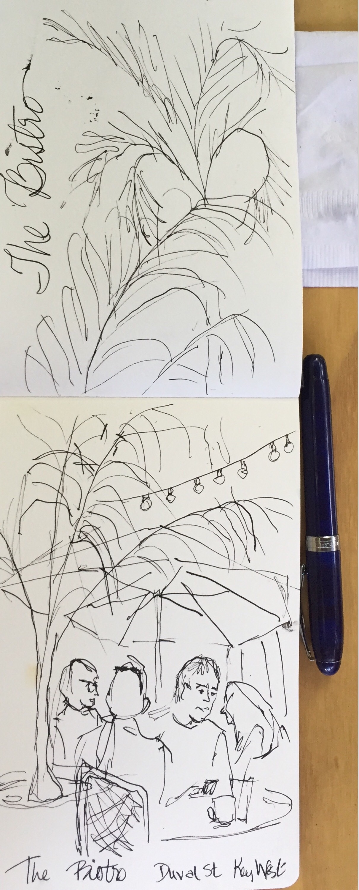 Drawing pelicans before we eat at Key Largo – Buzzards Roost. May be there soon hurrah.