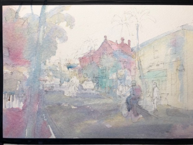 And now. The palms and the biker are too dominate too. Just an awful painting. What was I thinking of painting those palms on the right so dead black?! 😵😵😵