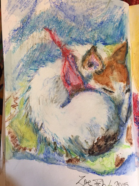 Anyway this is drawn with a black Pentel brush pen. The highlights are gouache as is the background. The lettering is done with the Kuratake brush pen.
