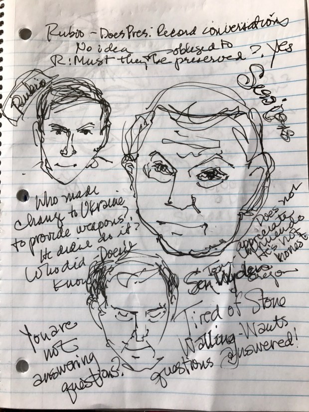 Try Margaret xoxoxo think I might get out my Prismacolor art sticks and color these. #ussenate #sessionshearings #sessions #kamalaharris #warner #ink #sketching #dailydrawing #lamysafari #rubio #wyden #warner #ussenate
