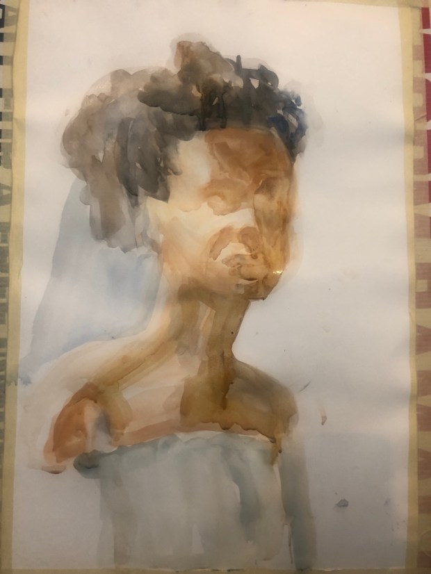 Second break. That ghost is still there. I do t seem to make much progress drawing the beginning with paint. And it definitely stresses me out that I can’t erase it.