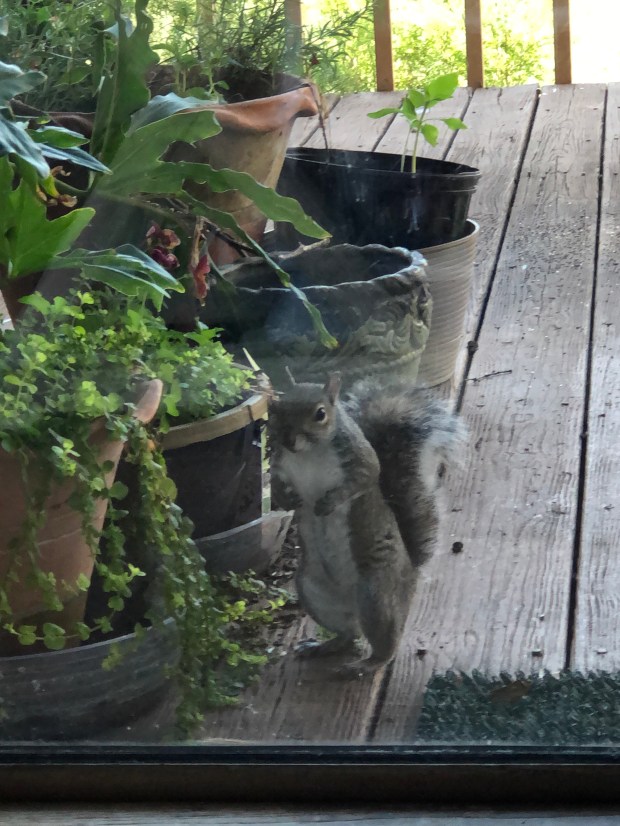 My evening visitor. Zoe did NOT like him a bit. I think he or she is kinda cute. Just a little small young raccoon.