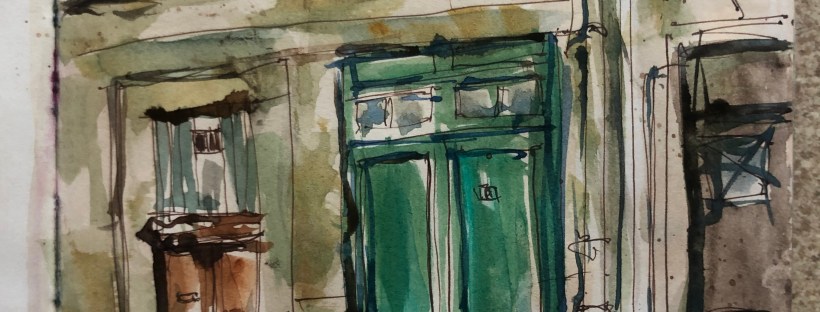 adding more darks to windows and doors and people.