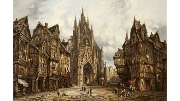 Another artist painted St Maclou back in the 1890s. He turned the square in front into a fairytale story book like setting.