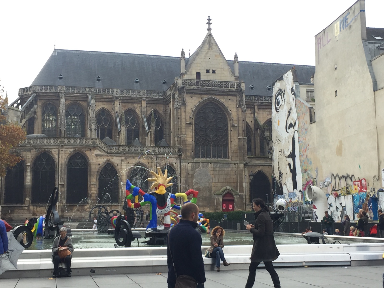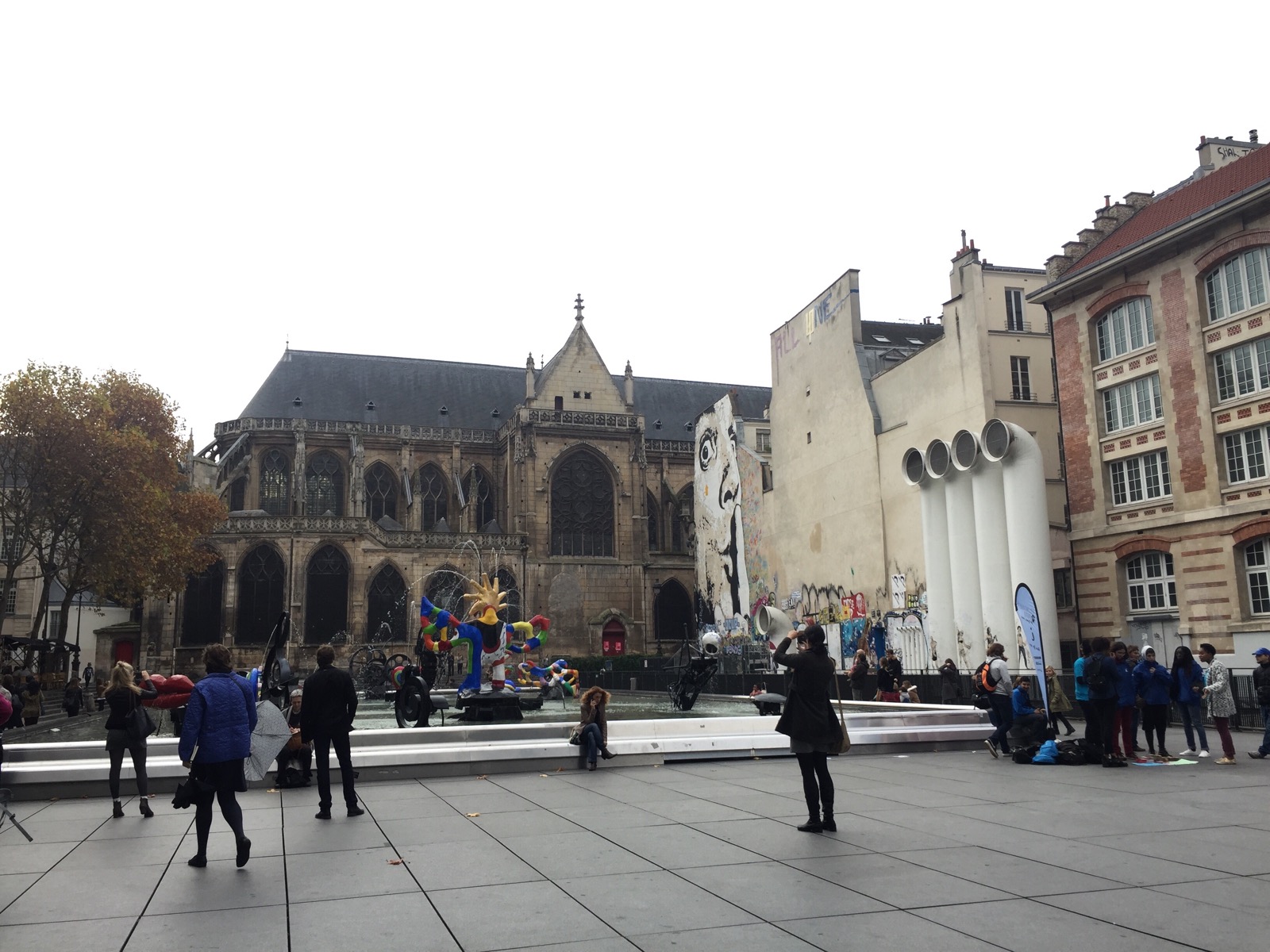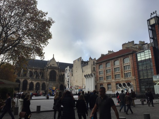 The wild assortment of buildings on the square next to the Pompidou.
