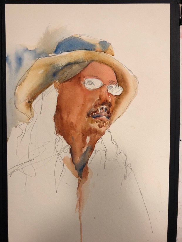 Charles said time to quit so I did and I started another of John. Let ok’ing at him he needs more shadow on his cheek to define his cheek bone. Maybe a highlight lifted also on the cheek and more shadow in his brow.