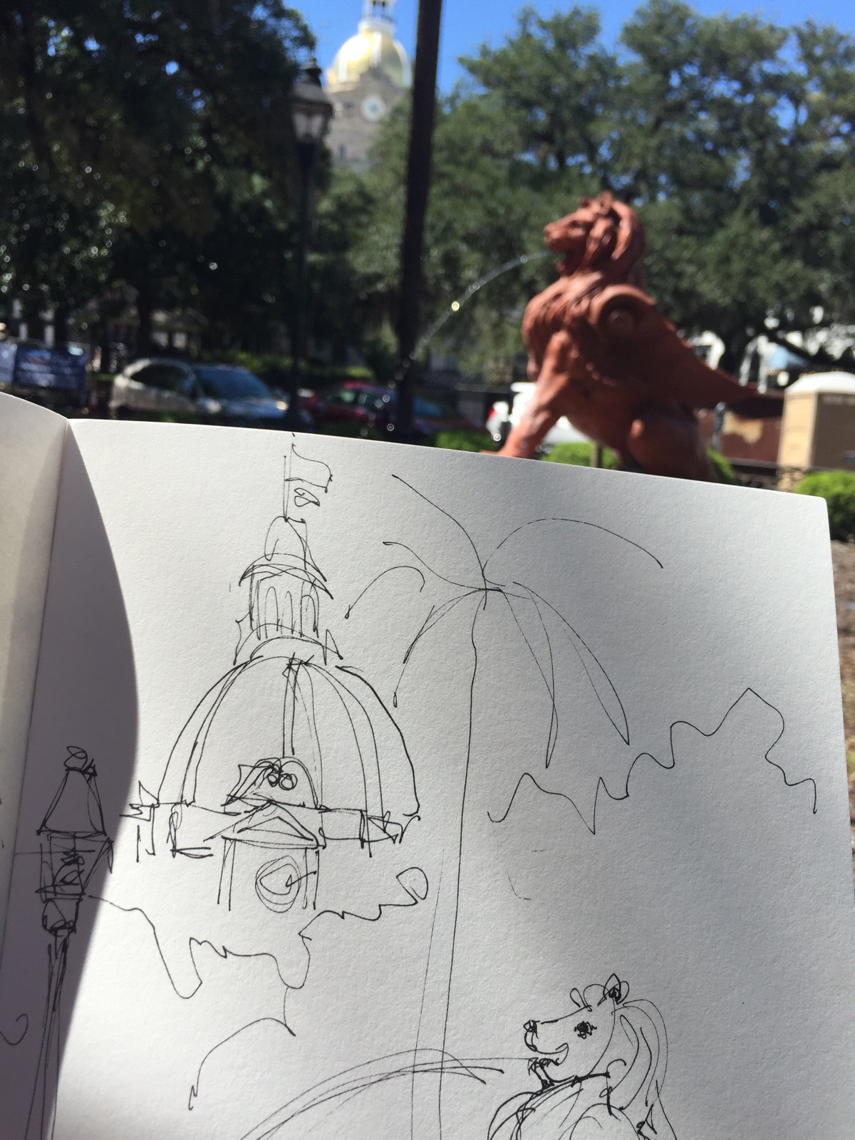 Started drawing with my Namiki Fude pen-love it’s thick thin lines. I tried to finish it at Lowe’s today BUT huge trucks thought they needed to be close to the door and blocked my view. 🤨