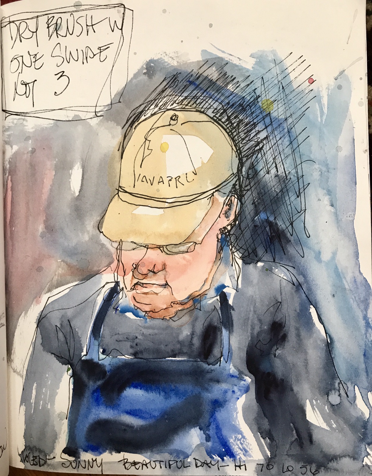 I got the brilliant idea to do this one on arches #140 cold press. BIG a mistake. Hard to write on with any ink pen or marker I had.