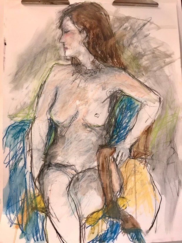 Kathe playing with my caran dache neocolor ii and some charcoal.