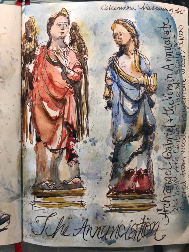 I used a 2B pencil to write the info from the museum all over the background of this page to add texture and lightly erased it before I painted it.